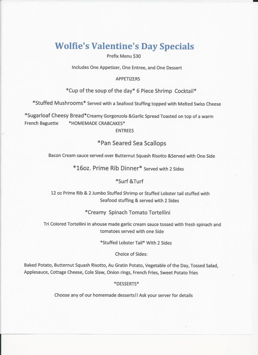 Valentine's Day Menu